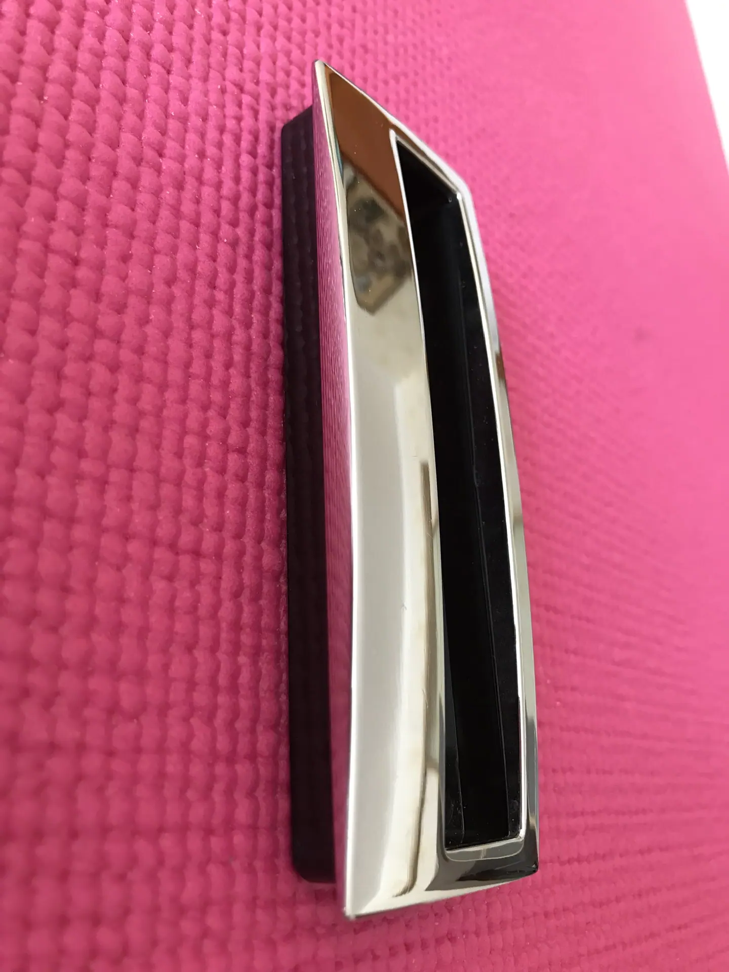 На остатке - 6 шт. Крепится с обратной стороны двери двумя винтами, входящими в комплект. Расстояние между центрами посадочных отверстий- 96 мм. Материал наружной части- силумин (сплав алюминия, кремния и других элементов). Материал внутренней части- пластик черного цвета. Покрытие- хром. Фото товара реальные.