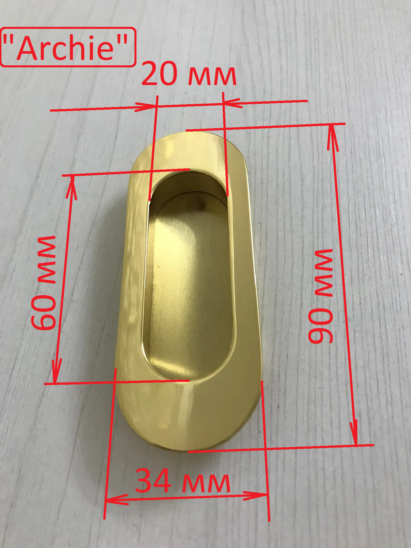На остатке - 3 шт. Мебельные ручки для раздвижных дверей ARCHIE предназначены для установки в двери шкафов-купе и в межкомнатные раздвижные двери. Глубина паза- 9 мм. Материал- ZnAl (сплав алюминия и цинка). Высококачественное покрытие- золото. Фото реальные.