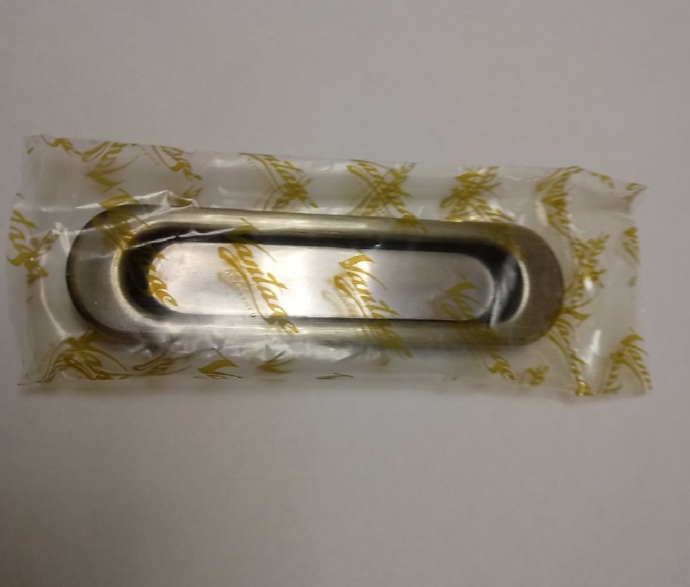 Пластиковое основание ручки крепится в подготовленный паз саморезами, наружная металлическая часть ручки защелкивается в основание