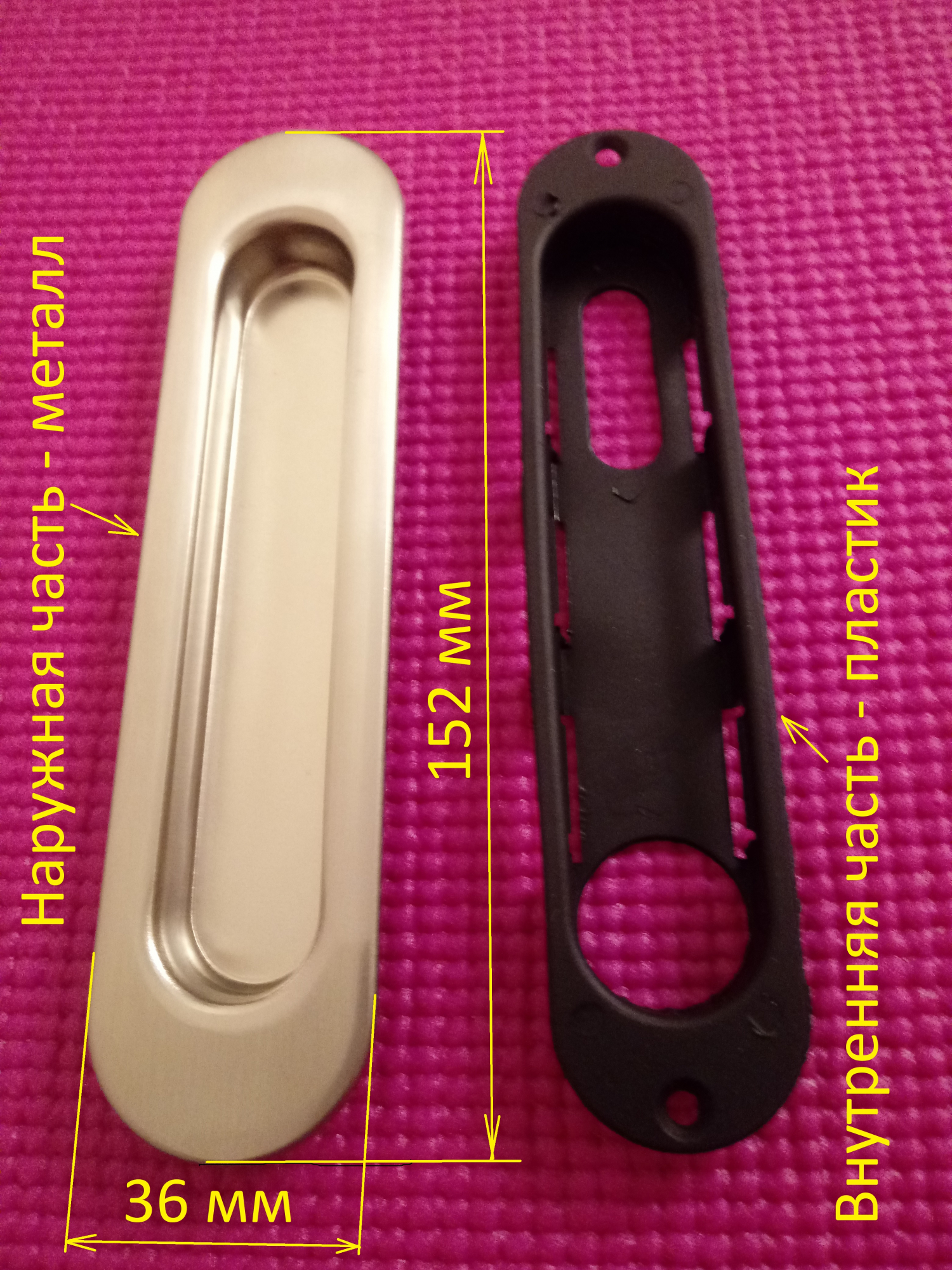 Мебельные ручки для раздвижных дверей Larvij предназначены для установки в двери шкафов-купе и в межкомнатные раздвижные двери. Размеры внутреннего крепежного паза под ручку: 120/25/10 мм. Внутренняя пластиковая часть крепится к двери саморезами. Наружная металлическая часть защелкивается в пластиковую. Расстояние между центрами крепежных отверстий: 136 мм. Материал- сталь (наружная часть) и пластик (внутренняя часть). Качественное покрытие- никель. Фото реальные.